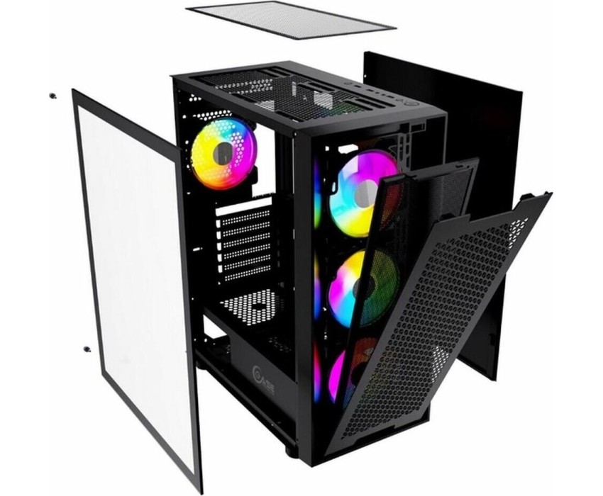 Powercase Alisio Micro X4B V2, Tempered Glass, 4х 120mm ARGB fans, ARGB HUB, чёрный, mATX (CAMCXB-A4)