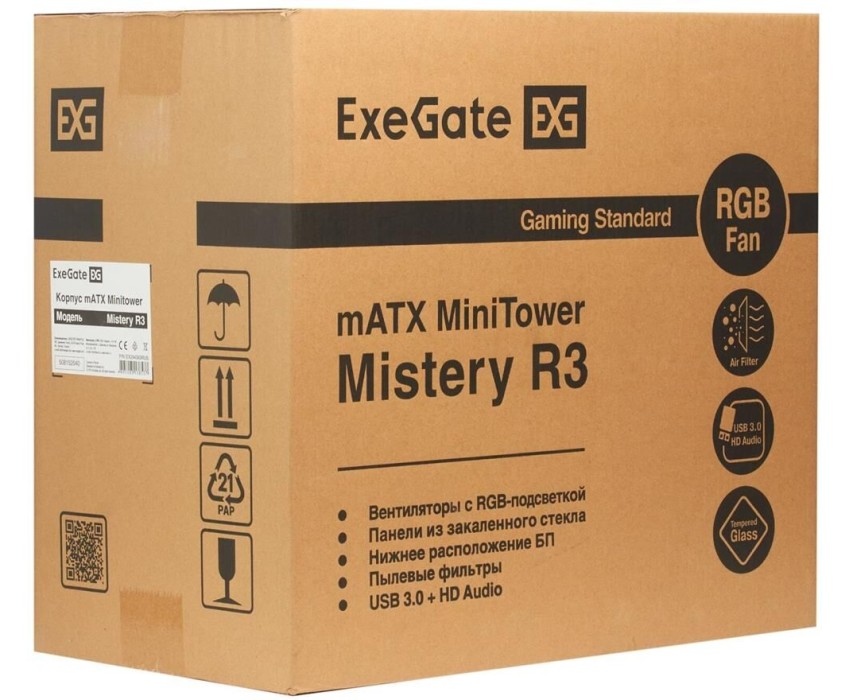 EXEGATE Корпус mATX Mistery R3, Mini-Tower, без БП, черный [ex294383rus]