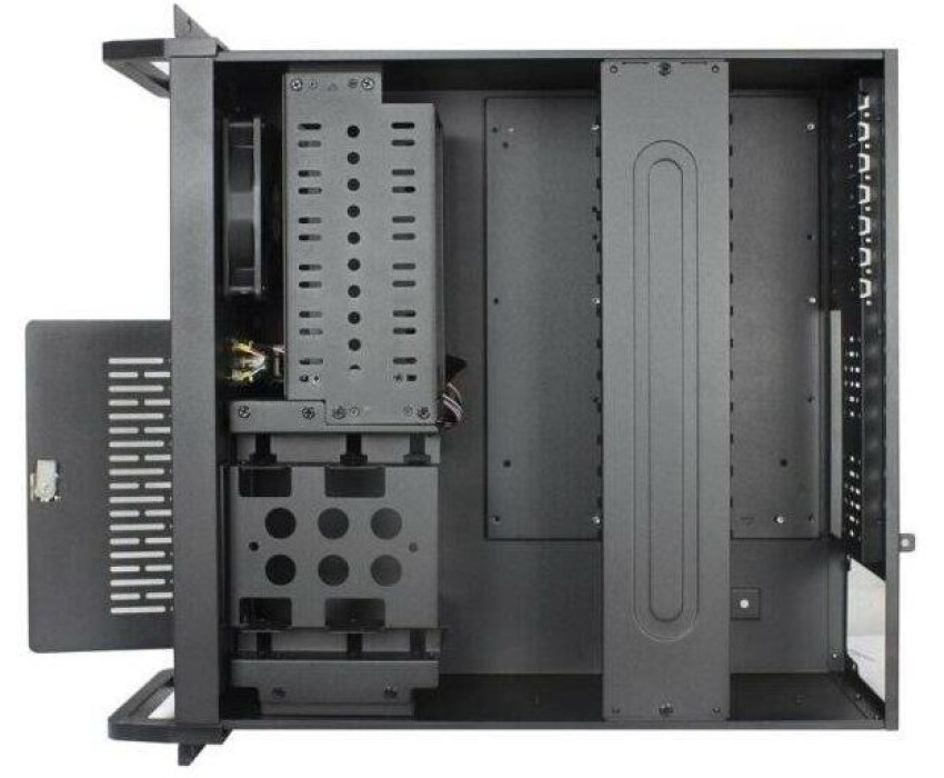 Назначение: Серверный корпус; Типоразмер: Rackmount; Форм-фактор: 4U; Мощность блока питания: Без БП; Материал: сталь; Цветовое оформление корпуса: чёрный; Выходы на передней панели: 2 х USB 3.0; Окно: нет; Наличие дверцы: да; Система вентиляции корпуса: Передний вентилятор Есть 120 мм, Задний вентилятор Есть 2 х 60 мм; Места под дополнительные вентиляторы: нет; Кол-во внутренних отсеков 2.5”: 1; Кол-во внешних отсеков 3.5”: 1; Кол-во внутренних отсеков 3.5”: 8; Кол-во отсеков 5,25”: 2; Количество слотов