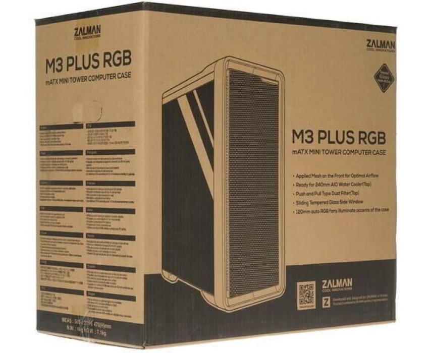 Корпус для ПК ZALMAN Корпус M3 PLUS RGB mATX Mini Tower PC Case, RGB Fan x4, T/G