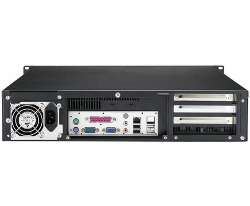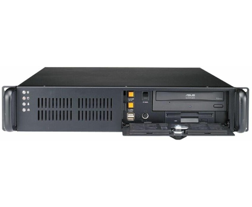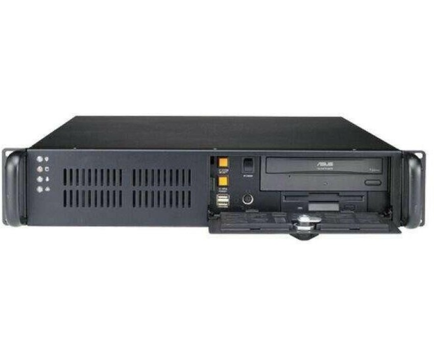 серверный корпус 2U, поддержка плат ATX/mATX, отсеки: внешние - 5.25" и 3.5", внутренний - 3.5", два 80мм вентилятора, 2x USB 2.0, установка карт расширения ч-з Riser-адаптер, фронтальная дверца на замке, место для БП Flex ATX 1U