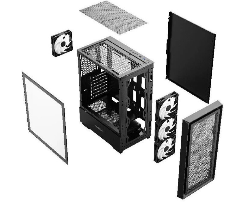 Powercase Mistral AY4B ARGB Black – стильный и функциональный корпус для мощных сборок Вместительный, стильный и технологичный – именно так можно охарактеризовать корпус Powercase Mistral AY4B ARGB Black. Этот midi-tower создан для геймеров, энтузиастов и профессионалов, которые ценят продуманную конструкцию, современную эстетику и эффективное охлаждение. Благодаря прозрачному боковому окну из закалённого стекла и адресной RGB-подсветке корпус не только обеспечивает отличные технические характеристики, но и