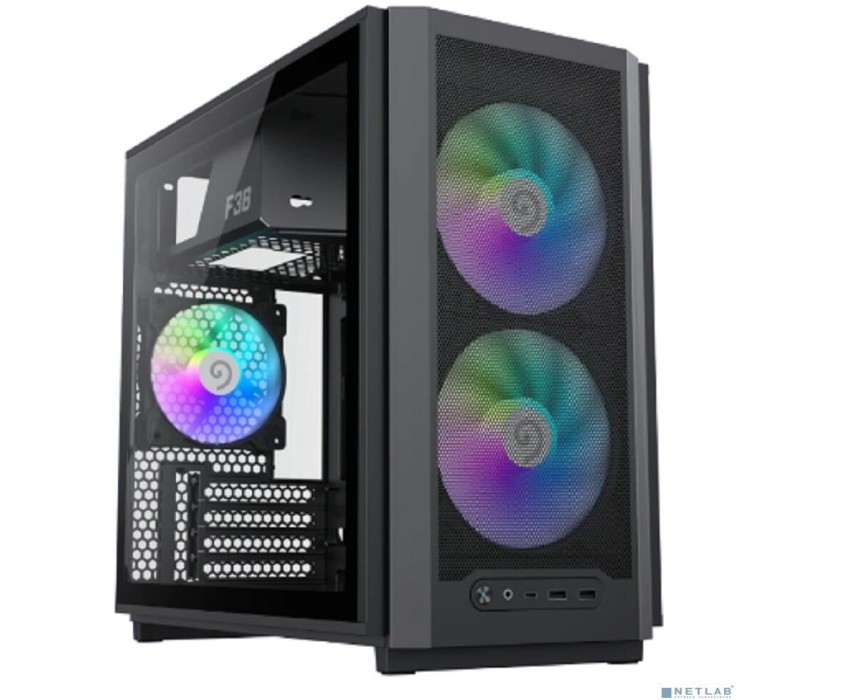 GameMax Корпус F36 BK без БП (Midi Tower, ATX, Черный, 1*USB Type-C, 3*120мм)