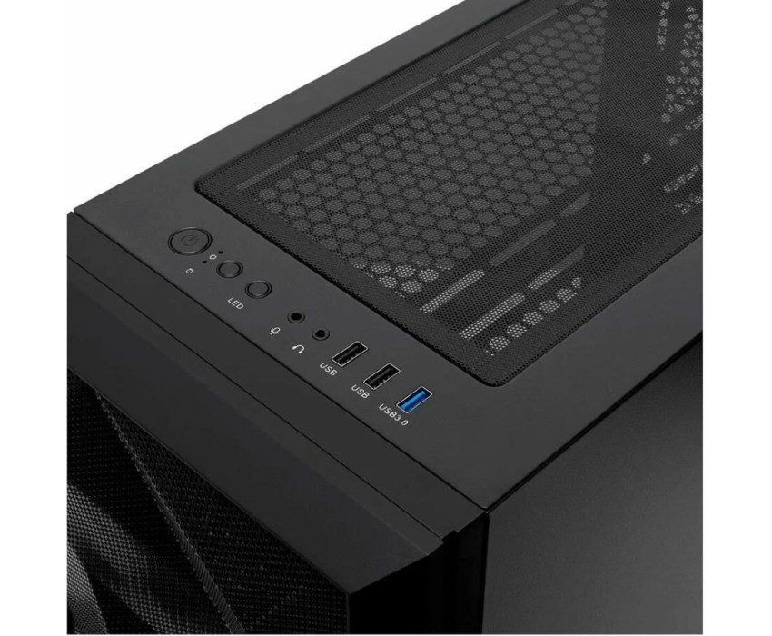 Компьютерный корпус HSPD M340-TGBK — это практичное и стильное решение для сборки современного ПК. Модель выполнена в чёрном цвете с сетчатой передней панелью и боковым окном из закалённого стекла, что придаёт ей современный вид и обеспечивает хороший воздушный поток. Корпус поддерживает установку материнских плат форматов mATX и mITX. Внутри предусмотрено достаточно пространства для видеокарты длиной до 350 мм, процессорного кулера высотой до 165 мм и блока питания длиной до 200 мм, что позволяет использовать современные и мощные комплектующие. Корпус изготовлен из прочной стали SPCC толщиной 0.5 мм, что обеспечивает надёжность конструкции. Внутри предусмотрены два отсека под SSD 2.5" и два под жёсткие диски 3.5", а также четыре слота расширения для установки видеокарты и других компонентов. На верхней части корпуса расположены один порт USB 3.0, два порта USB 2.0 и стандартные аудиоразъёмы, что обеспечивает быстрый доступ к подключению периферийных устройств и наушников. Хотя корпус поставляется без вентиляторов, он поддерживает установку дополнительных кулеров на переднюю, верхнюю и заднюю панели. Габариты корпуса составляют 415x220x410 мм. HSPD M340-TGBK подойдёт как для домашнего, так и для офисного использования, сочетая в себе функциональность, надёжность и современный дизайн.