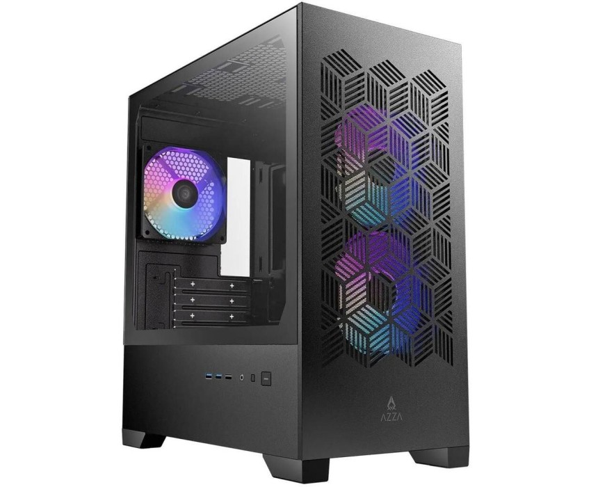 AZZA Корпус AEROHEX-M черный без БП mATX 8x120mm 2x140mm 1xUSB2.0 2xUSB3.0 audio bott PSU