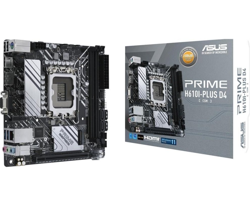 ASUS Материнская плата PRIME H610I-PLUS D4-CSM, Socket LGA 1700, Intel H610, mini-ITX, Ret