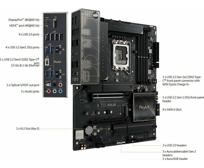 Материнская плата ASUS Материнская плата PROART B760-CREATOR WIFI, Socket LGA 1700, Intel B760, ATX, Ret