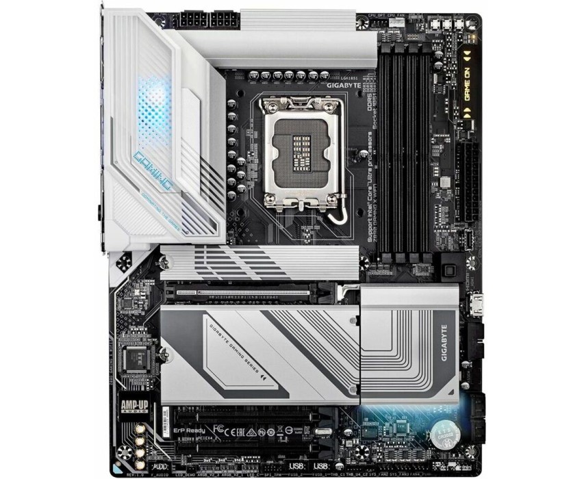 Поддержка процессоров Intel® Core™ Ultra (Серия 2) Решение VRM с 16+1+2 фазами и поддержкой технологии Digital twin Комплекс D5 Bionic Corsa для оптимизации работы подсистемы памяти Функция AORUS AI SNATCH для автоматического разгона с использованием искусственного интеллекта Функция AI PerfDrive для быстрой активации предустановленных профилей BIOS Setup Гарантия совместимости с 4 модулями ОЗУ DDR5 и распознавание XMP профилей Разъём WIFI EZ-Plug для быстрого подключения антенны модуля Wi-Fi