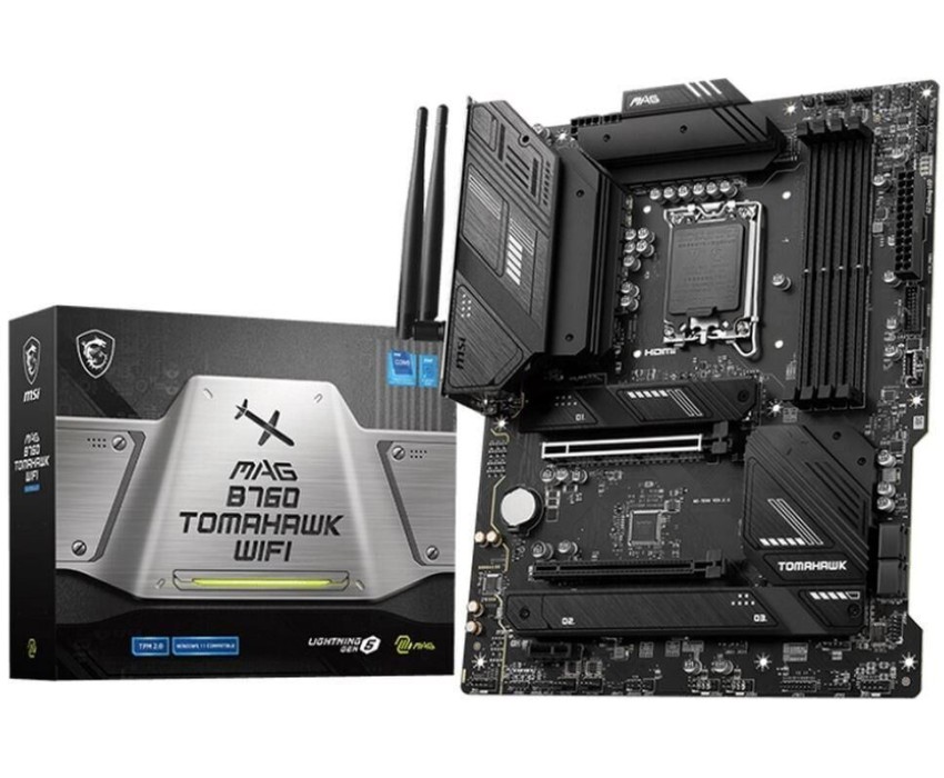 Материнская плата MSI MAG B760 TOMAHAWK WIFI B760, LGA1700, 4*DDR5, 2*PCIEx16, 1*PCIEx1, 3*M.2, 2*TypeC, 4*USB3.2Gen2, 2*USB3.2Gen1, 8*USB2.0, 4*SATA3.0, 2.5G, DP, HDMI, ATX, RTL