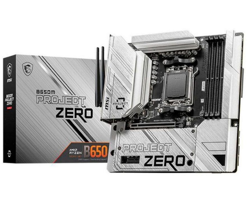 Материнская плата MSI Материнская плата B650M PROJECT ZERO B650, AM5, 4*DDR5, 1*PCIEx16, 1*PCIEx1, 2*M.2, 3*TypeC, 3*USB3.2Gen2, 4*USB3.2Gen1, 6*USB2.0, 4*SATA3.0, 2.5G, DP, HDMI, M-ATX, RTL