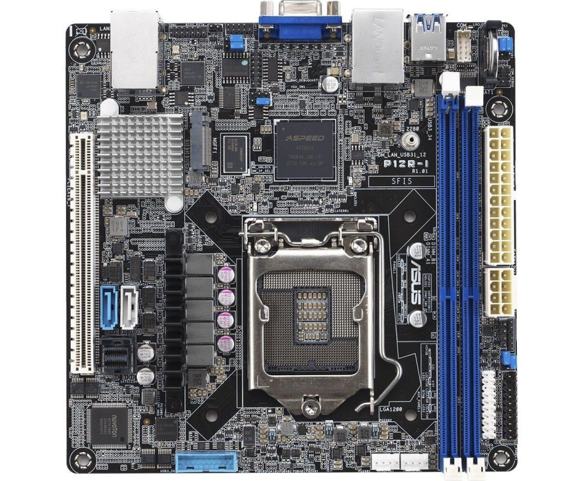 Материнская плата ASUS P12R-I Mini-ITX, LGA 1200, 2x DDR4 DIMM (to 64GB ECC UDIMM), 6x USB 3.0 (4 rear), 6x SATA (4 in MiniSAS HD), 1x PCIE x16, 1xM.2 2280, LAN 2x 1Gb, Video AST2600, IPMI Option (507604)