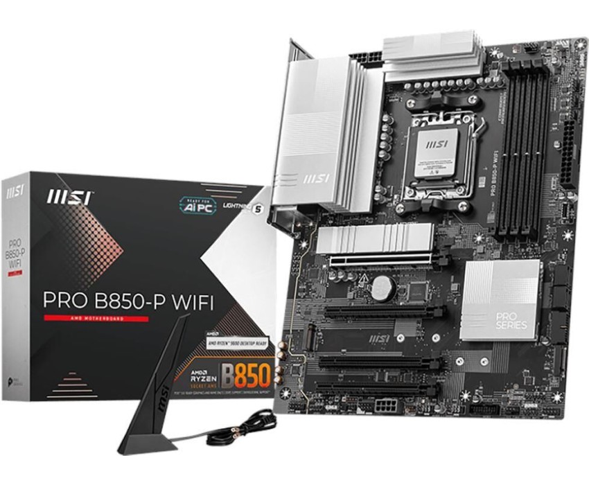 Материнская плата MSI PRO B850-P WIFI B850, AM5, 4*DDR5, 4*PCIEx16, 3*M.2, 3*TypeC, 1*USB3.2Gen2, 5*USB3.2Gen1, 8*USB2.0, 4*SATA3.0, 5G, HDMI, ATX, RTL