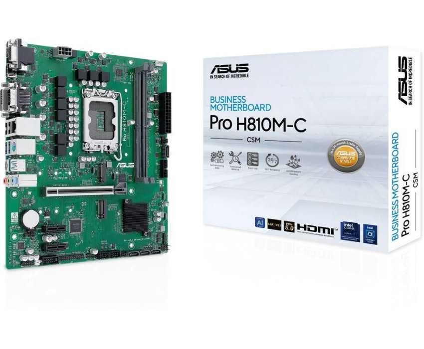 Материнская плата ASUS Материнская плата PRO H810M-C-CSM LGA1851 mATX 2xDDR5 PCIEx16 2xPCIEx1 2xM.2 USB-C DP HDMI DVI VGA GLAN