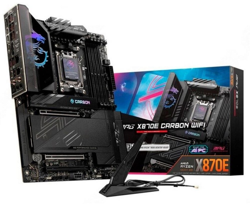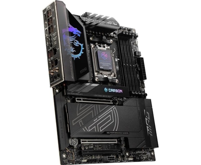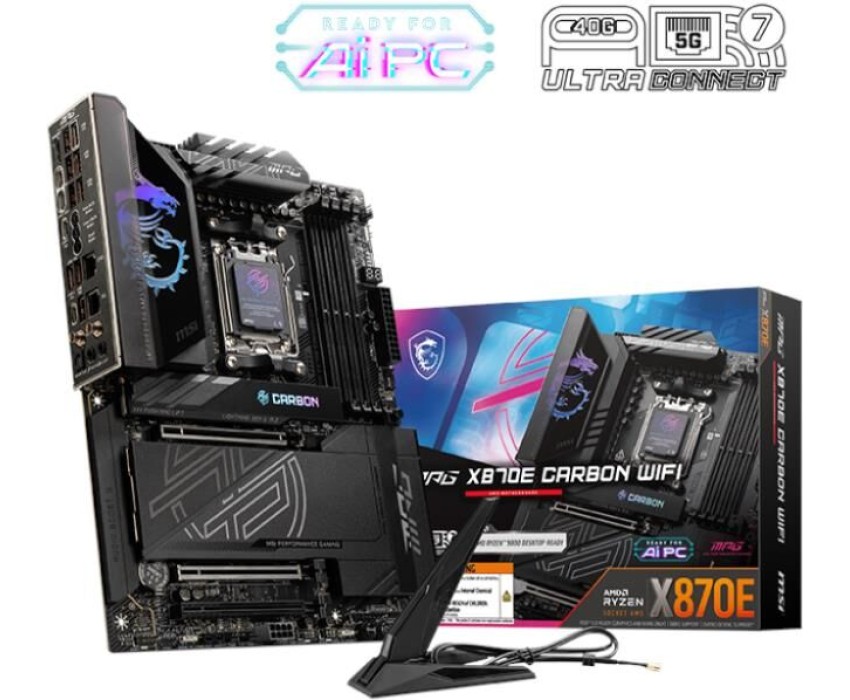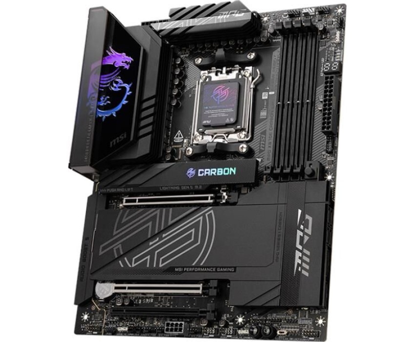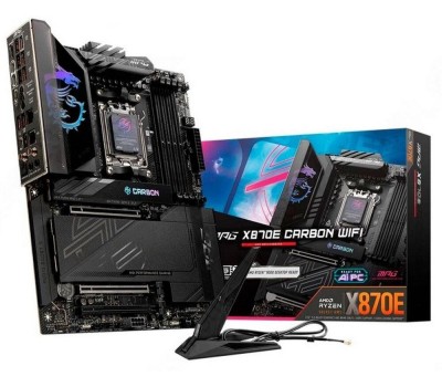 Материнская плата MSI MPG X870E CARBON WIFI X870, AM5, 4*DDR5, 3*PCIEx16, 4*M.2, 4*TypeC, 9*USB3.2Gen2, 4*USB3.2Gen1, 4*USB2.0, 4*SATA3.0, 5G, 2.5G, 2*Type-C(DP), HDMI, ATX, RTL