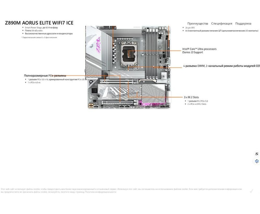 Материнская плата GIGABYTE Материнская плата Z890M AORUS ELITE WIFI7 ICE, Socket LGA 1851, Intel Z890, mATX, Ret