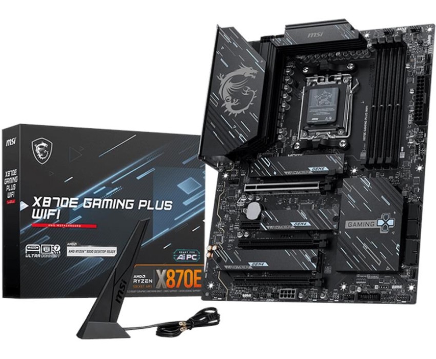 Материнская плата MSI Материнская плата X870E GAMING PLUS WIFI X870E, AM5, 4*DDR5, 3*PCIEx16, 1*PCIEx1, 3*M.2, 2*TypeC, 2*USB3.2Gen2, 6*USB3.2Gen1, 10*USB2.0, 4*SATA3.0, 5G, 1*Type-C(DP), HDMI, ATX, RTL