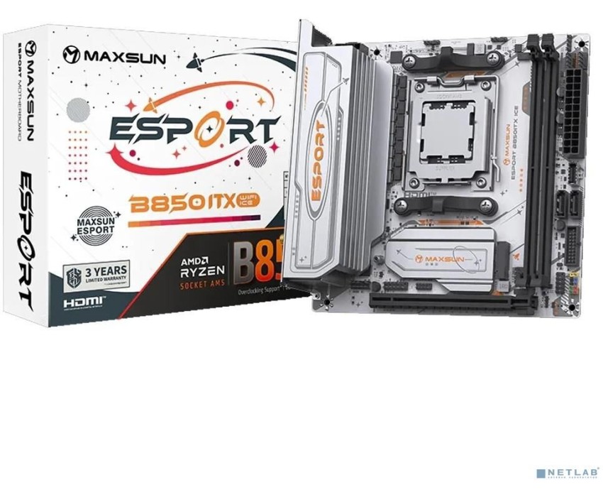 [Материнская плата] MAXSUN MS-eSport B850ITX WIFI ICE (Socket AM5, mini-ITX, 2*DDR5(96Gb), DP/HDMI, 2*SATA3, 2*M.2, 1*PCIEx16, 4*USB2.0, 2*USB 3.0, 1*Type-C, LAN 1*2,5G, Bluetooth, Wi-Fi 802.11ax, RTL)