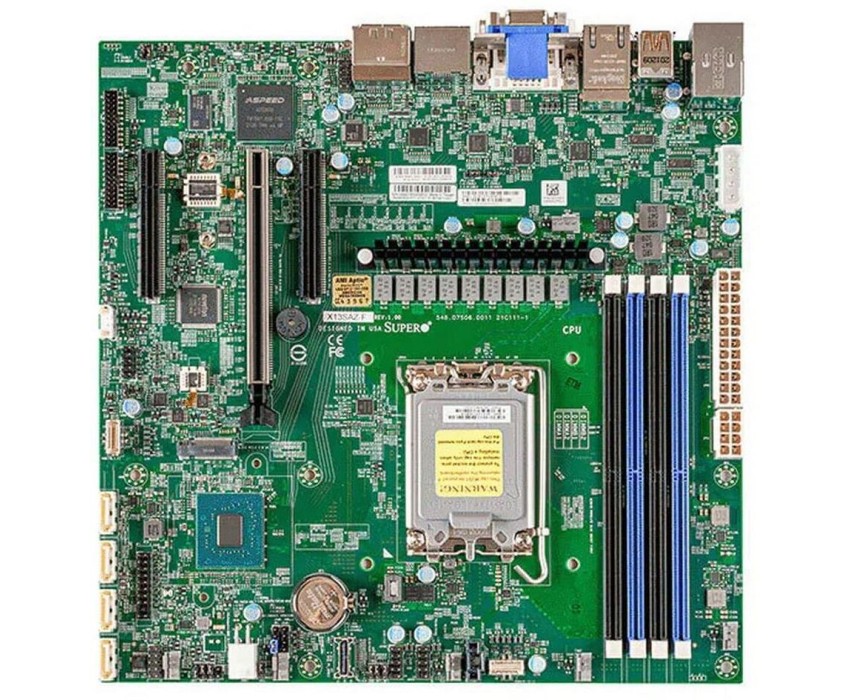 **Материнская плата Supermicro MBD-X13SAZ-F-B** Материнская плата Supermicro MBD-X13SAZ-F-B — это надёжное и функциональное решение для серверов и рабочих станций. Она обеспечивает стабильную работу и высокую производительность, что делает её идеальным выбором для профессиональных задач. Основные характеристики: * Форм-фактор: поддерживает установку в серверные корпуса. * Чипсет: обеспечивает эффективное взаимодействие компонентов. * Слоты расширения: позволяют устанавливать дополнительные устройства. * Поддержка памяти: позволяет использовать большое количество оперативной памяти. * Сетевые возможности: обеспечивают быстрое и стабильное подключение к сети. Эта материнская плата подходит для использования в различных серверных и рабочих станциях, обеспечивая надёжную работу и возможность расширения функционала. Если вам нужна стабильная и эффективная материнская плата для профессионального использования, то Supermicro MBD-X13SAZ-F-B будет отличным выбором.