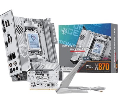 **Материнская плата MSI MPG X870I EDGE TI EVO WIFI: мощь и компактность для вашего ПК!** Ищете материнскую плату, которая объединит высокую производительность и компактный размер? MSI MPG X870I EDGE TI EVO WIFI — идеальный выбор для сборки мощного, но при этом компактного ПК! **Почему стоит выбрать MSI MPG X870I EDGE TI EVO WIFI?** * **Совместимость с современными процессорами:** разъём AM5 позволит использовать последние модели процессоров. * **Поддержка быстрой памяти:** два слота для DDR5 с минимальной частотой 4800 МГц и возможностью разгона до 10133 МГц — ваш ПК будет работать молниеносно! * **Современные интерфейсы:** версия PCI Express 5.0, один слот M.2 для скоростных SSD, два разъёма SATA 6 Гб/с — всё для быстрой работы системы. * **Богатый набор разъёмов:** два порта USB 3.2 Gen 2, два USB 3.2 Gen 1, два USB 2.0, а также два порта Type-C (с поддержкой DP) и HDMI — подключите все необходимые устройства. * **Беспроводное подключение:** встроенный Wi-Fi позволит избежать лишних проводов и упростит подключение к сети. * **Компактность:** форм-фактор Mini-ITX позволяет собрать ПК в небольшом корпусе, не жертвуя производительностью. **Основные характеристики:** * чипсет: AMD X870; * форм-фактор: Mini-ITX; * цвет: белый. С материнской платой MSI MPG X870I EDGE TI EVO WIFI ваш компьютер будет не только мощным, но и стильным!