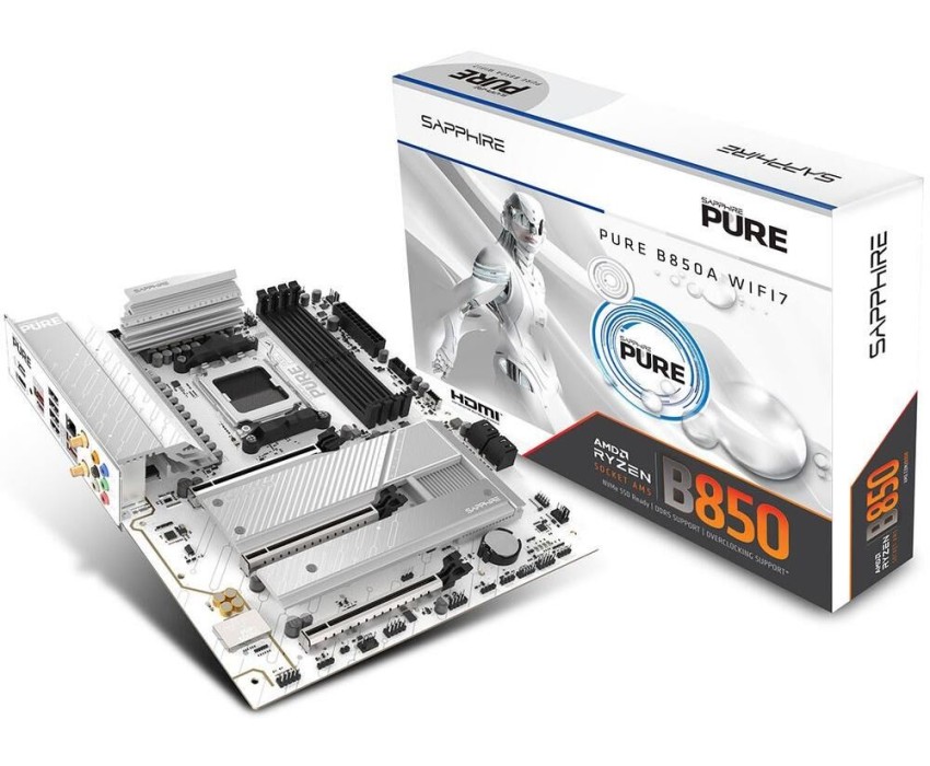 Материнская плата SAPPHIRE Материнская плата B850A PURE WIFI7 B850, AM5, 4*DDR5, 3*PCIEx16, 3*M.2, 2*TypeC, 3*USB3.2Gen2, 2*USB3.2Gen1, 6*USB2.0, 4*SATA3.0, 2.5G, DP, HDMI, ATX, RTL