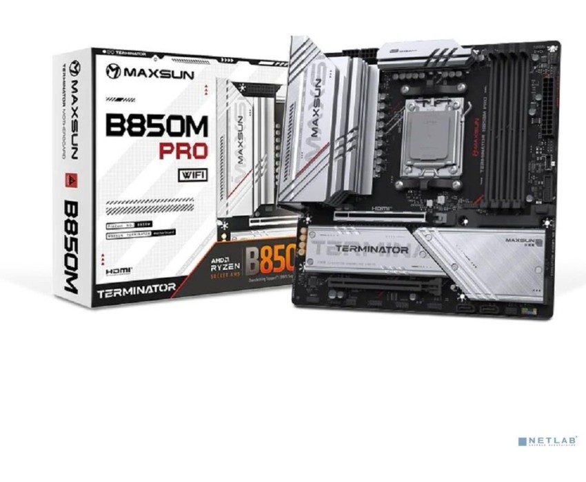 [Материнская плата] MAXSUN MS-Terminator B850M PRO WIFI (Socket AM5, mATX, 4*DDR5(192Gb), DP/HDMI, 2*SATA3, 3*M.2, 1*PCIEx16/1*PCIEx4, 1* Type-C, 4*USB 2.0, 4*USB 3.2, LAN 1*2.5G, SPDIF, WiFi 6E, RTL)