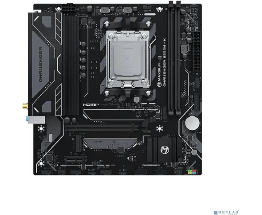 Материнская плата MAXSUN MS-Challenger B850M-K WIFI (Socket AM5, mATX, 2*DDR5 (96Gb), HDMI 1.4, 2*SATA3, 1*M.2, 1*PCIEx16/1*PCIEx1, 2*USB 2.0, 4*USB 3.2, LAN 1*1G, Wi-Fi 6, RTL)