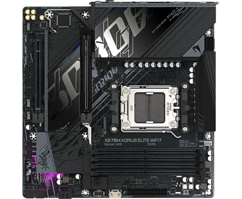 Материнская плата GIGABYTE Материнская плата X870M AORUS ELITE WIFI7 Socket AM5 AMD X870 4xDDR5 mATX AC`97 8ch(7.1) 2.5Gg RAID+HDMI