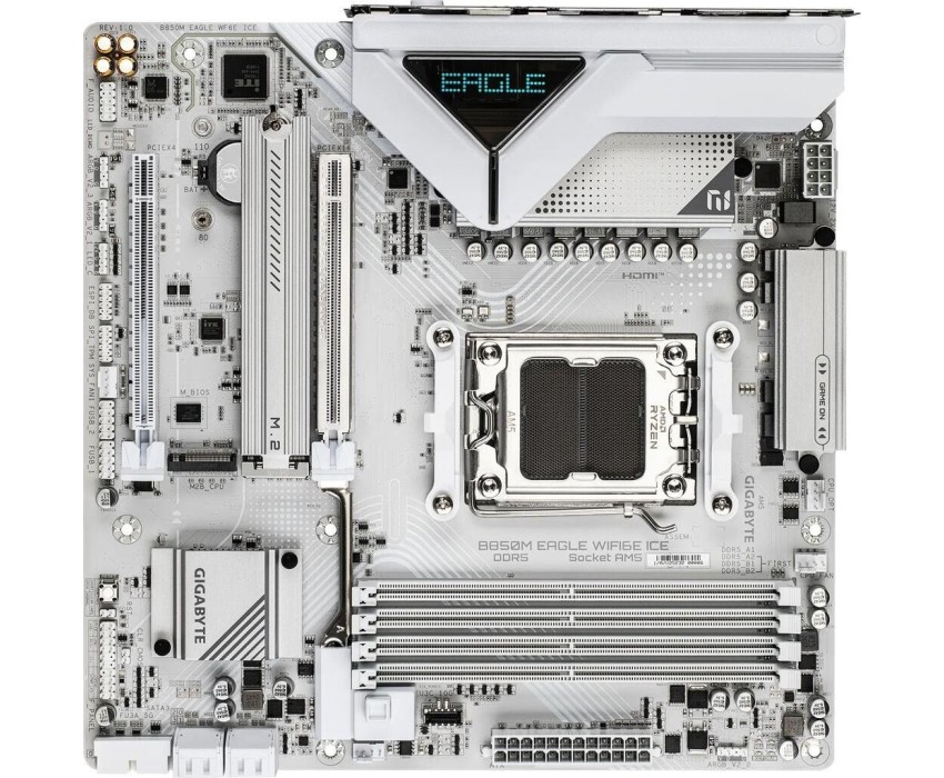 Материнская плата GIGABYTE Материнская плата B850M EAGLE WIFI6E ICE Socket AM5 AMD B850 4xDDR5 mATX AC`97 8ch(7.1) 2.5Gg RAID+HDMI+DP