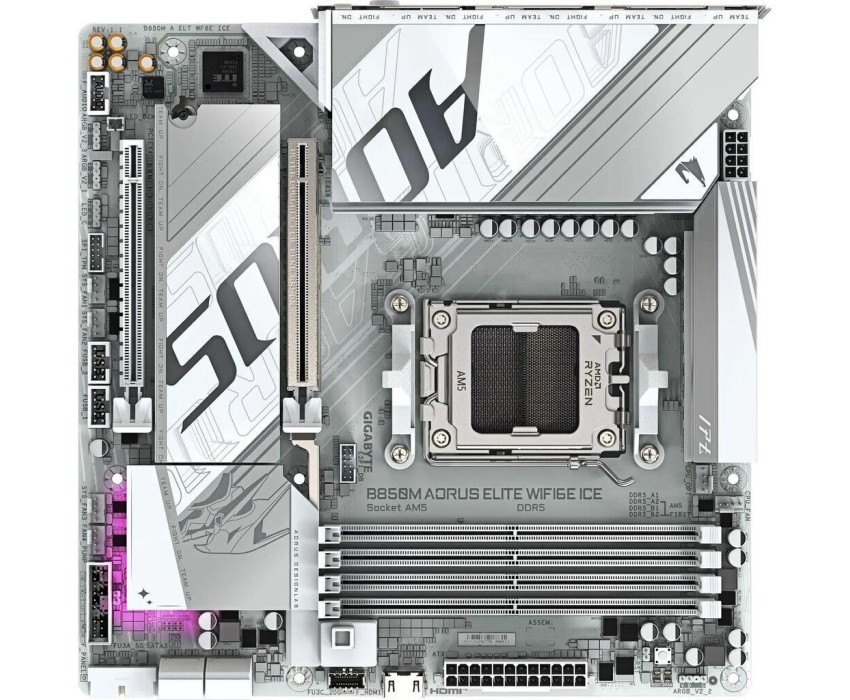 Материнская плата GIGABYTE Материнская плата B850M AORUS ELITE WIFI6E ICE Socket AM5 AMD B850 4xDDR5 mATX AC`97 8ch(7.1) 2.5Gg RAID+DP