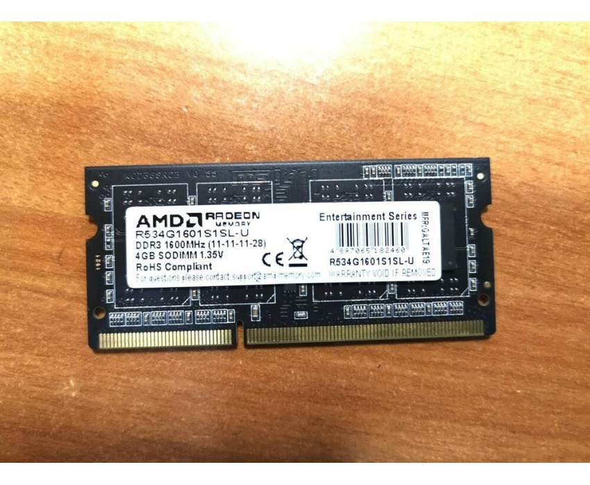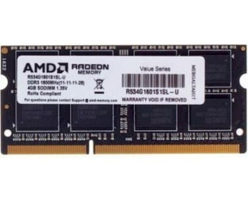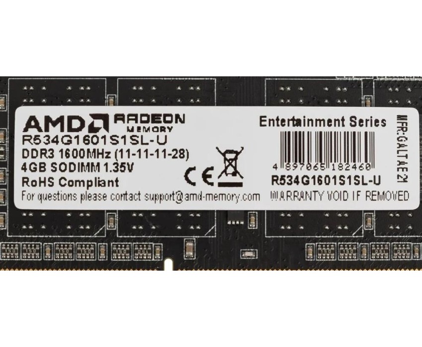 Модуль памяти AMD Radeon 4GB DDR3L 1600 SO DIMM R5 Entertainment Series Black R534G1601S1SL-U Non-ECC, CL11, R534G1601S1SL-U 1.35V, Retail (182460)