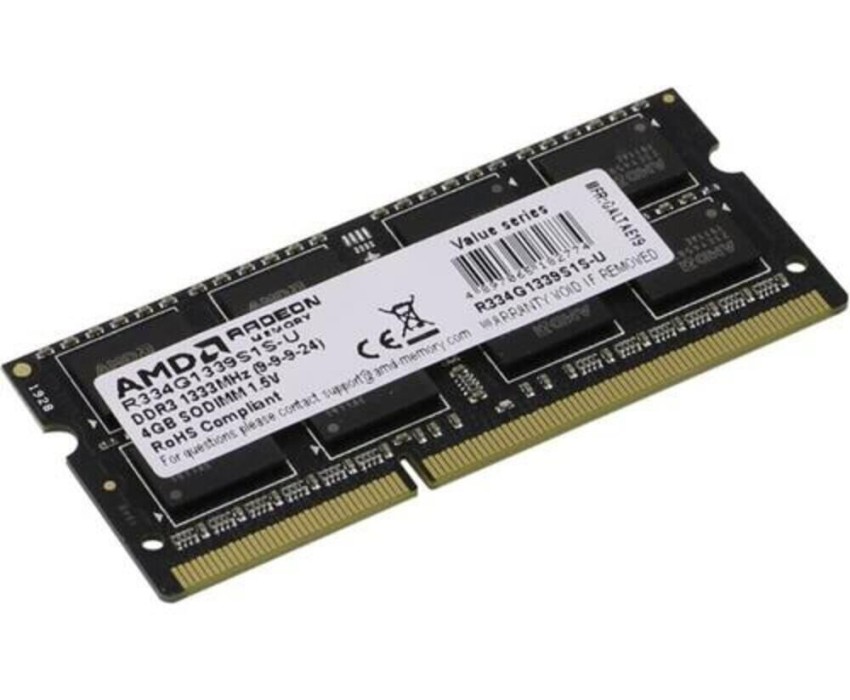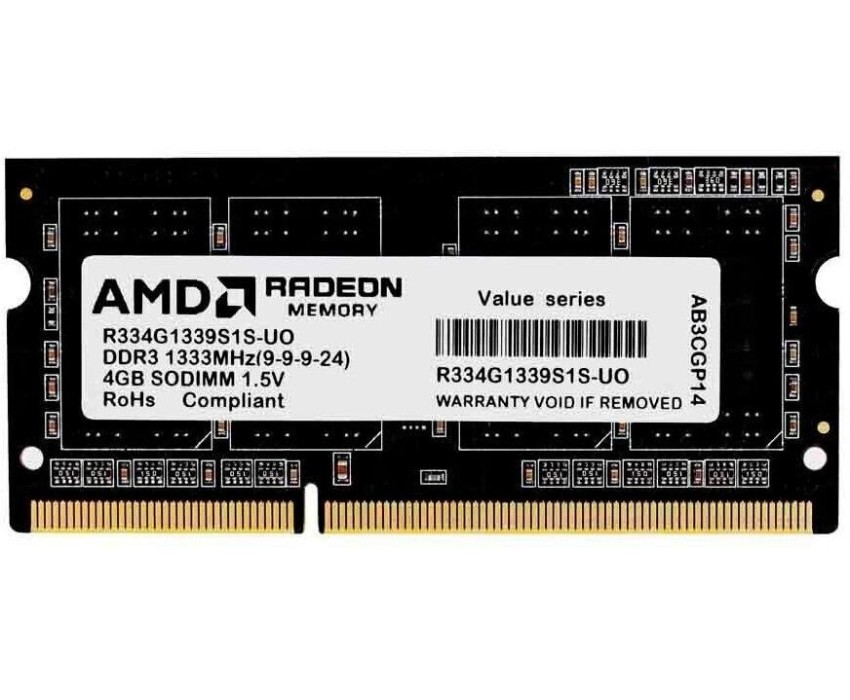 AMD RADEON Модуль памяти 4GB DDR3 1333 SO DIMM R3 Value Series Black R334G1339S1S-UO Non-ECC, CL9, 1.5V, Bulk R334G1339S1S-UO (180343)