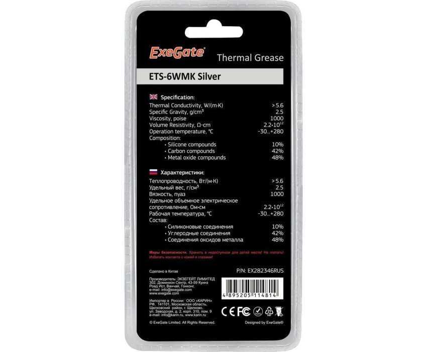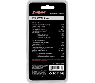 Термопаста EXEGATE ETS-6WMK Silver (5,6 Вт/(м/К), 2г, шприц с лопаткой) EX282346RUS