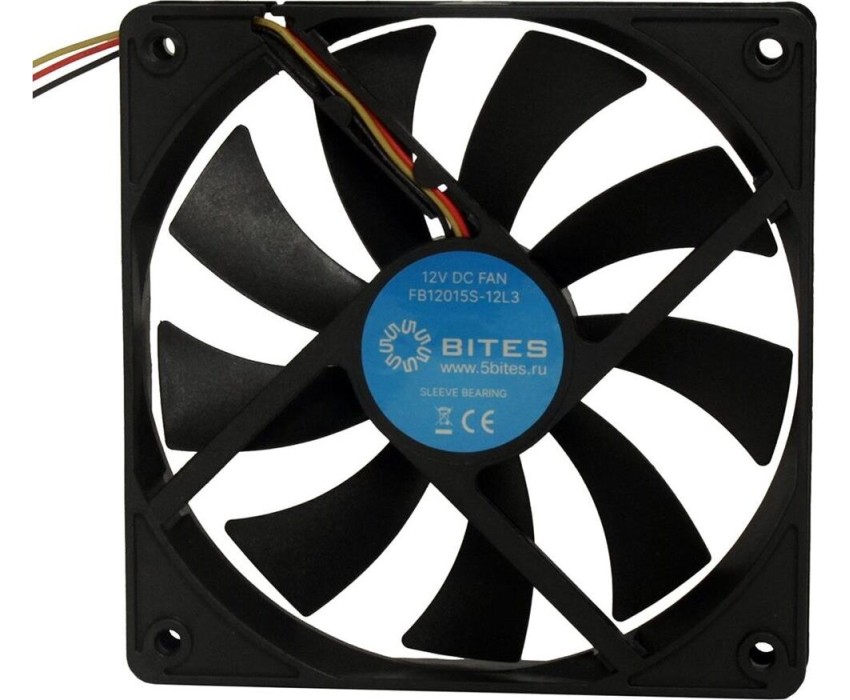 Вентилятор 12V 5BITES; Размер (мм): 120х120х15; Тип подшипника: скольжения; Скорость вращения (RPM): 1200; Уровень шума (dBa): 27; Воздушный поток (CFM): 39.20; Коннектор (pins): 3; Номинальная сила тока (А): 0.20