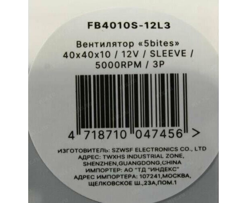 Вентилятор 5bites FB4010S-12L3 40X10 / SLEEVE / 5000RPM / 3P