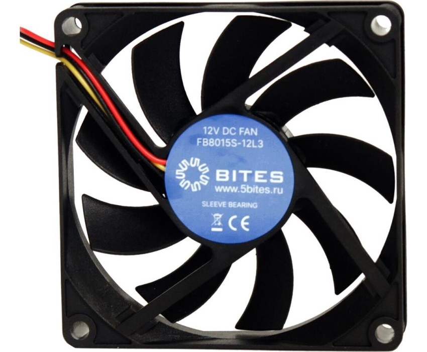 Вентилятор 12V 5BITES; Размер (мм): 80х80х15; Тип подшипника: скольжения; Скорость вращения (RPM): 2000; Уровень шума (dBa): 20; Воздушный поток (CFM): 23.01; Коннектор (pins): 3; Номинальная сила тока (А): 0.10