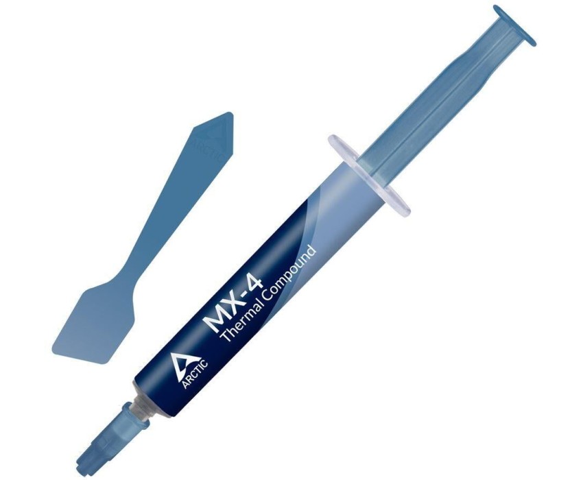 **Термопаста Arctic Cooling MX-4, 4 г, со шпателем** Термопаста Arctic MX-4 — это высококачественное теплопроводящее средство, предназначенное для эффективного отвода тепла от процессора к радиатору. Она обеспечивает надёжное соединение между процессором и радиатором, что способствует более эффективному охлаждению. Основные характеристики: * Вес: 4 грамма. * В комплекте поставляется шпатель для удобного нанесения термопасты. Преимущества использования термопасты Arctic MX-4: * Высокая теплопроводность. * Длительный срок службы. * Не проводит электричество. * Простота в использовании. Эта термопаста является отличным выбором для тех, кто ищет надёжное и эффективное решение для охлаждения процессора.