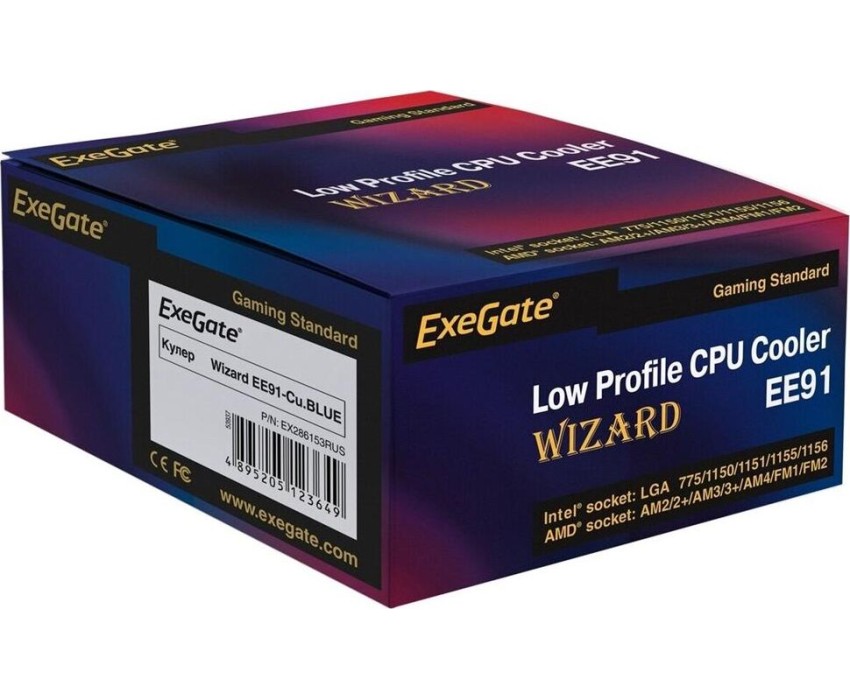Exegate EX286154RUS Кулер ExeGate Wizard EE91-PWM.Cu.BLUE (Al+Copper, LGA775/1150/1151/1155/1156/1200/AM2/AM2+/AM3/AM3+/AM4/FM1/FM2/754/939/940, TDP 80W, Fan 90mm, PWM, 800-2400RPM, Hydro bearing, 4pi