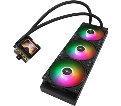 Тип компонента: помпа. Количество вентиляторов: 3. Размер вентилятора: 120. Материал радиатора: алюминий. Тип поставки: Ret. Цвет подсветки: многоцветная. Особенности: ARGB разъем: 3 PIN 5V. Срок службы помпы: 40000. Питание вентилятора от материнской платы: 4-pin. Питание помпы от материнской платы: 4-pin. Потребляемое напряжение вентилятора: 12. Потребляемая мощность помпы: 3.4. Термопаста в комплекте: есть. Габариты упаковки (ед) ДхШхВ: 0.455x0.225x0.14. Вес упаковки (ед): 2.88. Тип подсветки: ARGB. Цвет: черный. ЖК дисплей: есть. Длина радиатора: 397. Толщина радиатора: 27. Ширина радиатора: 120. Гарантия: 24 мес.. Скорость вращения вентилятора: 2000 об/мин. Скорость вращения помпы: 3000 об/мин. Тип подшипника: S-FDB Bearing. Тепловые трубки: без тепловых трубок. Потребляемое напряжение помпы: 12 В. Воздушный поток вентилятора: 70.84 cfm. Уровень шума вентилятора: 29.8 дБ. Socket: AM4, AM5, LGA 1150, LGA 1151, LGA 1155, LGA 1156, LGA 1200, LGA 1700, LGA 1851, LGA 2011, LGA 2011-v3, LGA 2066. Тип крепления: на винтах, скоба. Особенности системы охлаждения: PWM, подсветка. Дополнительные особенности: цельное основание. Назначение кулера для бренда: AMD, Intel. Вентиляторы: 3шт, 120 мм, 2000 об/мин; 29.8 дБ. Радиатор: алюминий, длина - 397 мм, толщина - 27 мм. Питание от МП: 4-pin. Совместимость: AM4, AM5, LGA 1150, LGA 1151, LGA 1155, LGA 1156, LGA 1200, LGA 1700, LGA 1851, LGA 2011, LGA 2011-v3, LGA 2066. Особенности: PWM, подсветка