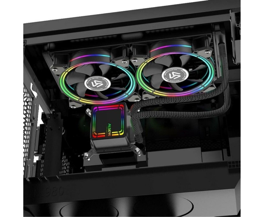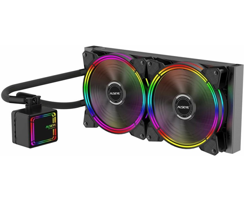 ALSEYE Жидкостная система охлаждения H280 TDP 200W (при T воздуха 45 С)Universal Platfrom PWM Single 5colors+ LED 140mm*2 {6}