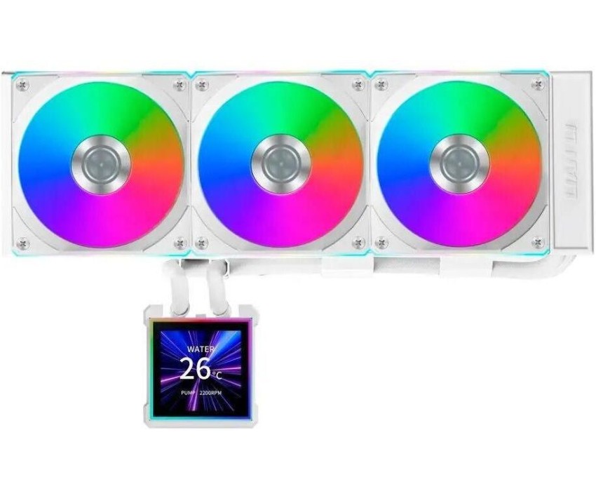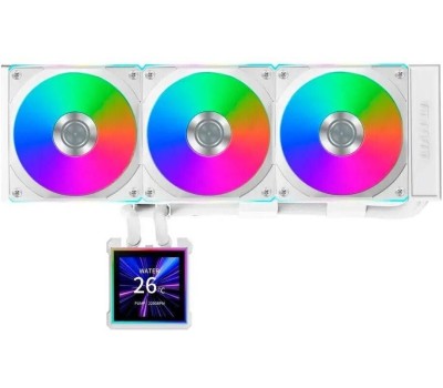 Материал радиатора: алюминий+медь. Тип поставки: Ret. Питание вентилятора от материнской платы: 4-pin. Габариты упаковки (ед) ДхШхВ: 0.445x0.23x0.14. Вес упаковки (ед): 3.3. Тип подсветки: ARGB. ЖК дисплей: есть. Гарантия: 72 мес.. Скорость вращения вентилятора: 200 - 2100 об/мин. Скорость вращения помпы: 1600 - 3200 об/мин. Уровень шума вентилятора: 30 дБ. Цвет товара: белый. Socket: AM4, AM5, LGA 1700, LGA 1851. Вентиляторы: 200 - 2100 об/мин; 30 дБ. Совместимость: AM4, AM5, LGA 1700, LGA 1851. Радиатор: алюминий+медь. Питание от МП: 4-pin