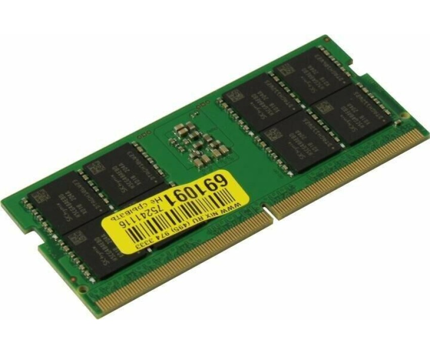 Тип памяти: DDR5. Тактовая частота: 4800. Радиатор охлаждения: нет. Тип поставки: Ret. Форм-фактор: SO-DIMM. Поддержка ECC: не поддерживается. Буферизация: unbuffered. Количество контактов: 262-pin. Показатель скорости: PC5-38400. Напряжение: 1.1В. Задержка: 40-40-40-70. Латентность (CAS): CL40. Габариты упаковки (ед) ДхШхВ: 0.17x0.062x0.1. Вес упаковки (ед): 0.03. RAS to CAS Delay (tRCD): 40. Row Precharge Delay (tRP): 40. Объем одного модуля: 32. Пропускная способность: 38400. Суммарный объем памяти всего комплекта: 32. Обозначение памяти: SO-DIMM. Гарантия: 120 мес.. Форм-фактор: SO-DIMM, 262-pin. Частота: 4800 МГц. Тип поставки: Ret. Объем: 32 ГБ. Латентность: CL40. Тайминги: 40-40-40-70