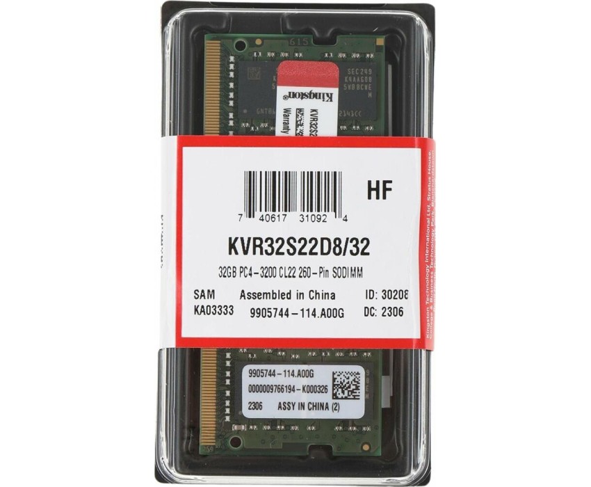 Оперативная память KINGSTON Оперативная память Valueram KVR32S22D8/32 DDR4 - 1x 32ГБ 3200МГц, для ноутбуков (SO-DIMM), Ret