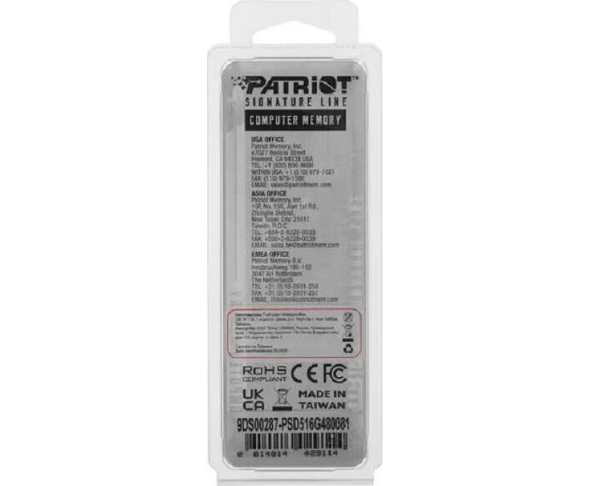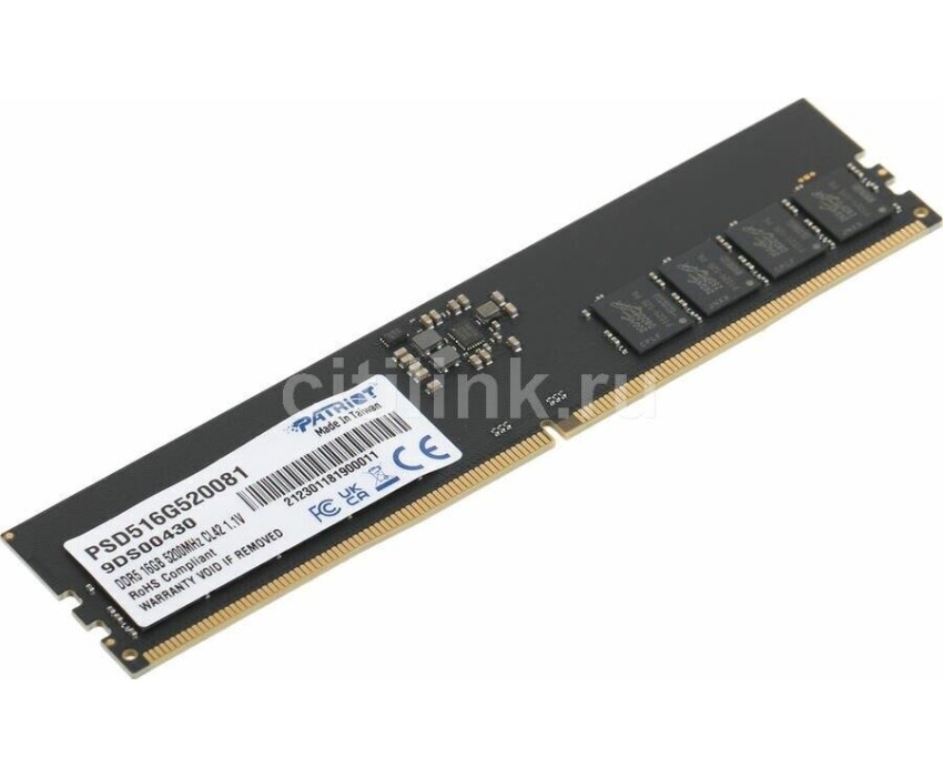 Оперативная память PATRIOT Оперативная память Signature PSD516G520081 DDR5 - 1x 16ГБ 5200МГц, DIMM, Ret
