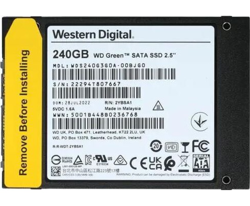 WD SSD GREEN 240Gb SATA3 2,5”/7мм WDS240G3G0A (аналог WDS240G2G0A), 1 year
