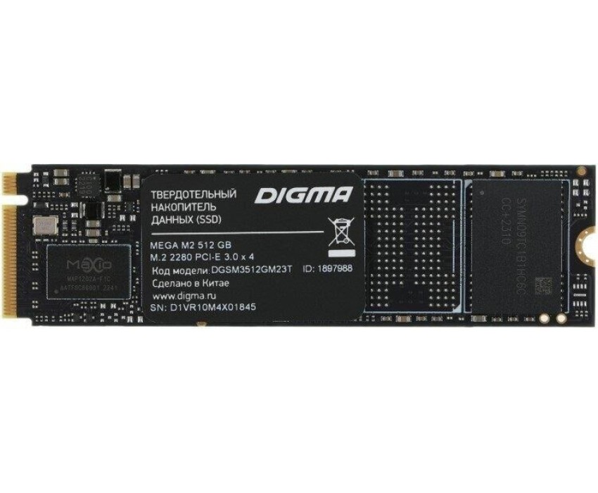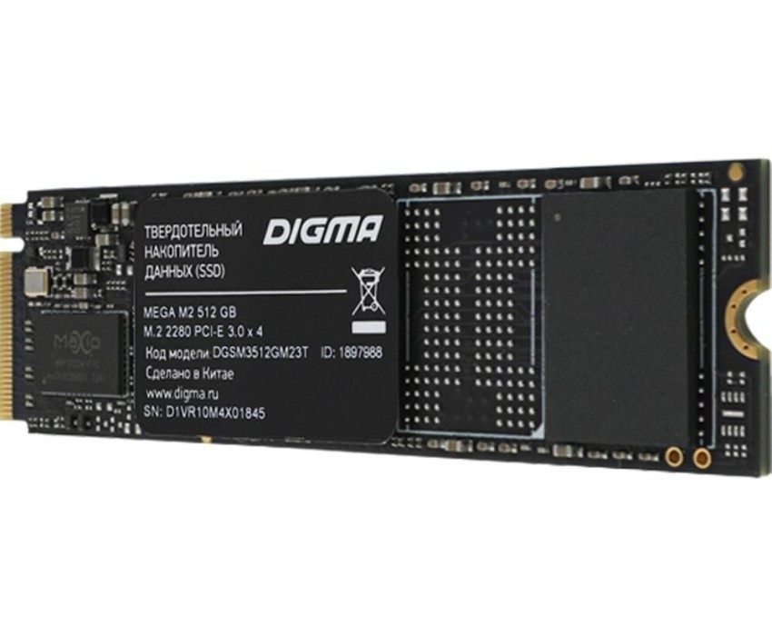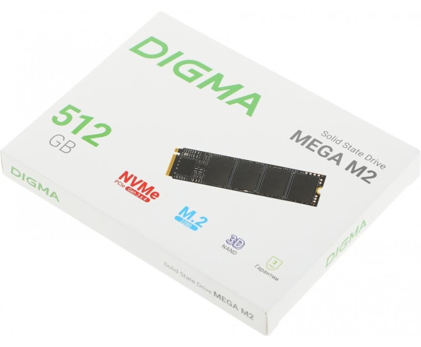 Накопитель SSD DIGMA SSD накопитель Mega M2 DGSM3512GM23T 512ГБ, M.2 2280, PCIe 3.0 x4, NVMe, M.2, rtl