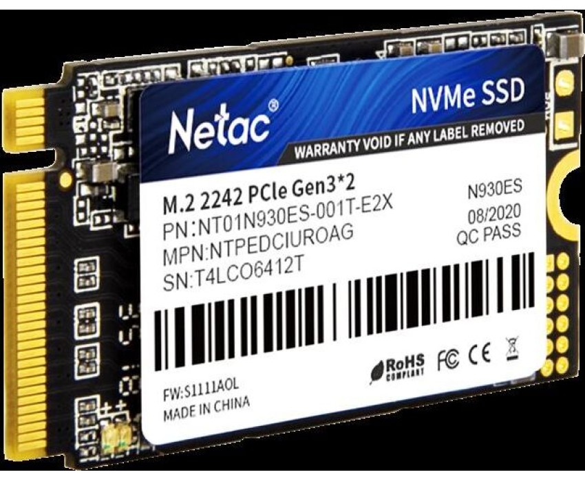 Накопитель SSD NETAC SSD накопитель N930ES NT01N930ES-001T-E2X 1ТБ, M.2 2242, PCIe 3.0 x2, NVMe, M.2