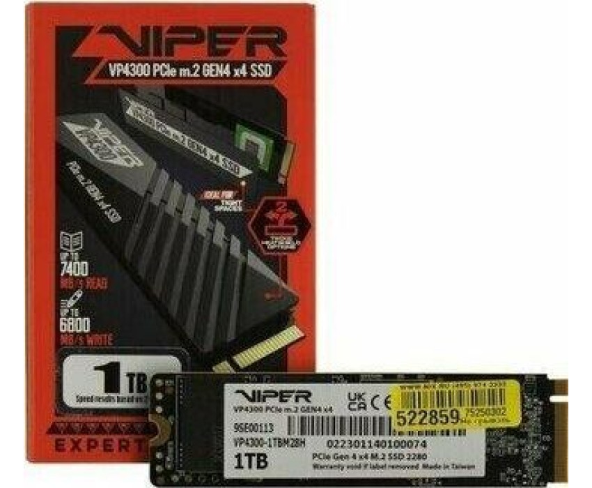 Накопитель SSD PATRIOT SSD накопитель Viper VP4300 Lite VP4300L1TBM28H 1ТБ, M.2 2280, PCIe 4.0 x4, NVMe, M.2