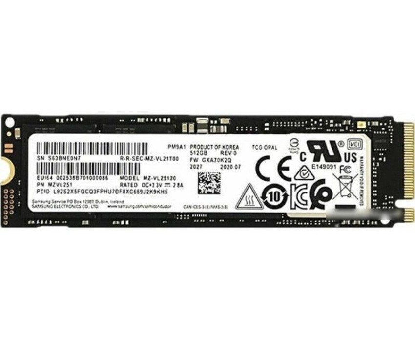 Samsung SSD PM9A1a, 1024GB, M.2(22x80mm) NVMe, PCIe 4.0 x4, VNAND 3-bit MLC, MZVL21T0HDLU-00B07