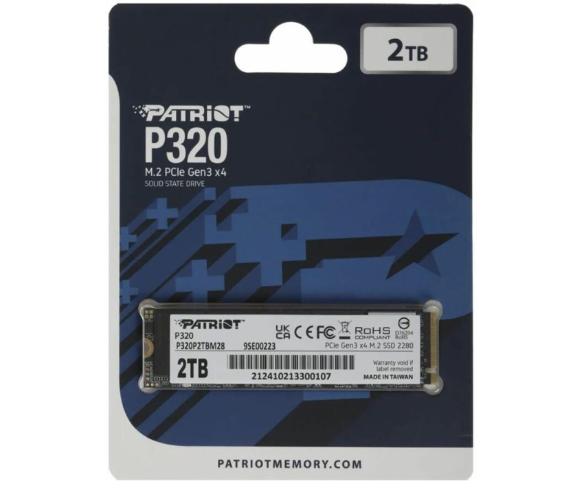 Накопитель SSD PATRIOT SSD накопитель P320 P320P2TBM28 2ТБ, M.2 2280, PCIe 3.0 x4, NVMe, M.2