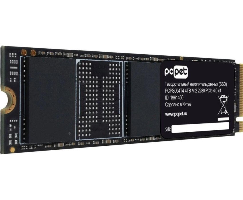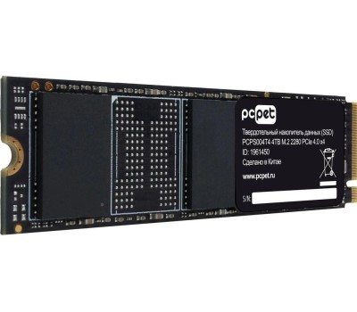Накопитель SSD PC PET SSD накопитель PCPS004T4 4ТБ, M.2 2280, PCIe 4.0 x4, NVMe, M.2, oem